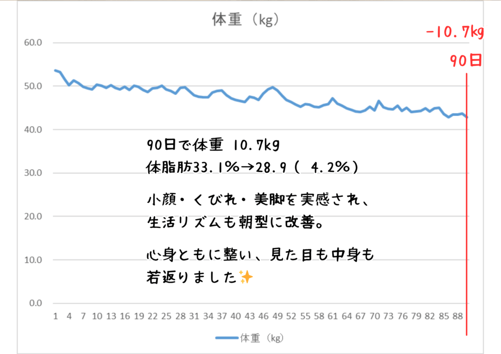 50代女性が教えてくれた✨ 90日で−10.7kg、心まで軽くなったダイエット🌈